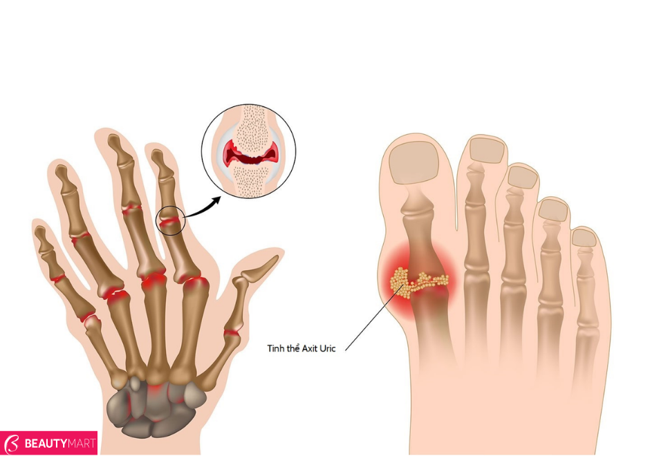- Gout thực chất là một dạng viêm khớp, do sự lắng đọng tinh thể urat (monosodium urat). Khi nồng độ acid uric vượt ngưỡng 7,0mg/dl (đối với nam) và 6mg/dl (đối với nữ) tức là bạn đã bị gout.