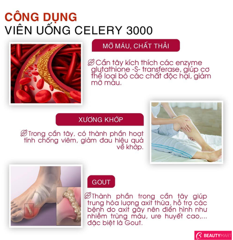 Công dụng của Blackmores Celery 3000 - Viên Uống Điều Trị Gout của Úc, Hộp 50 Viên