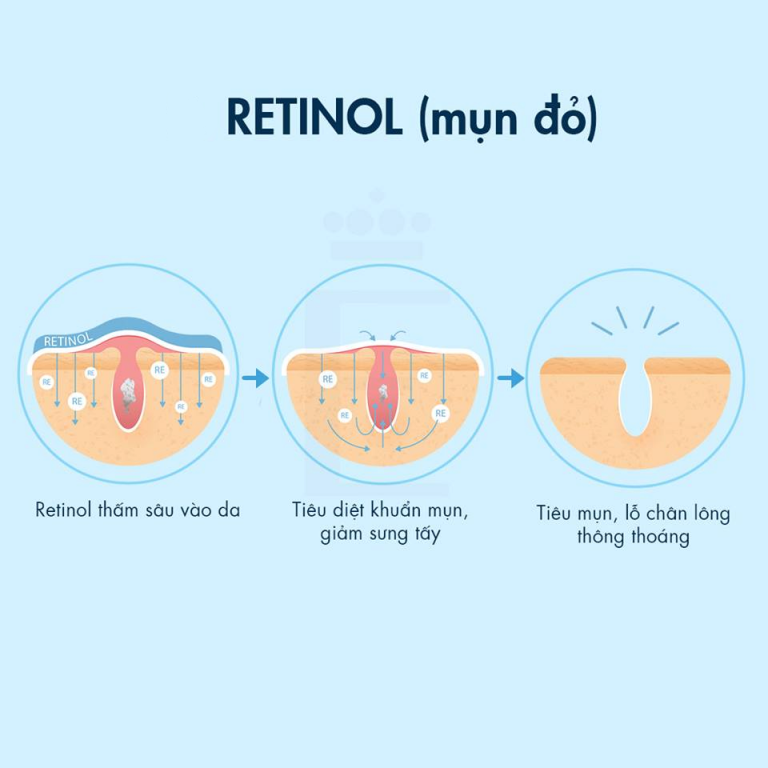 Retinol tác động đến các tế bào, giúp tế bào hoạt động mạnh hơn và quá trình đào thải – thay mới diễn ra nhanh hơn.