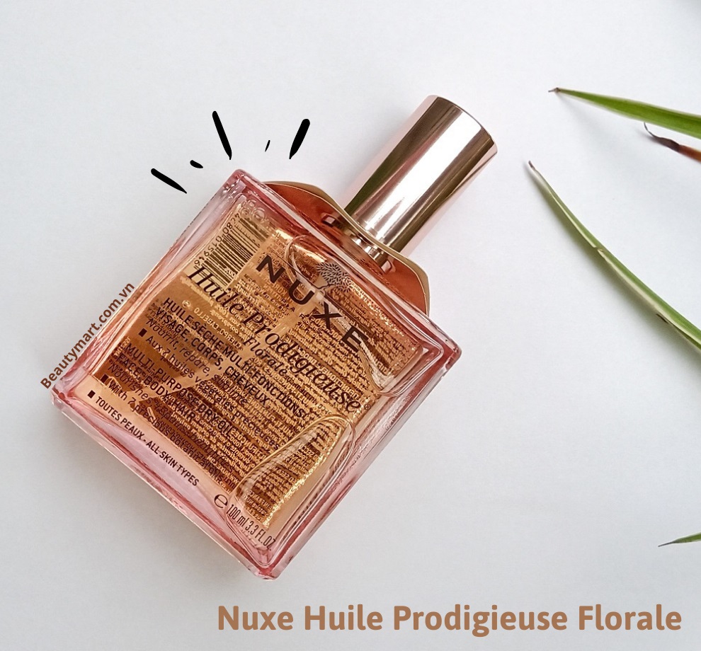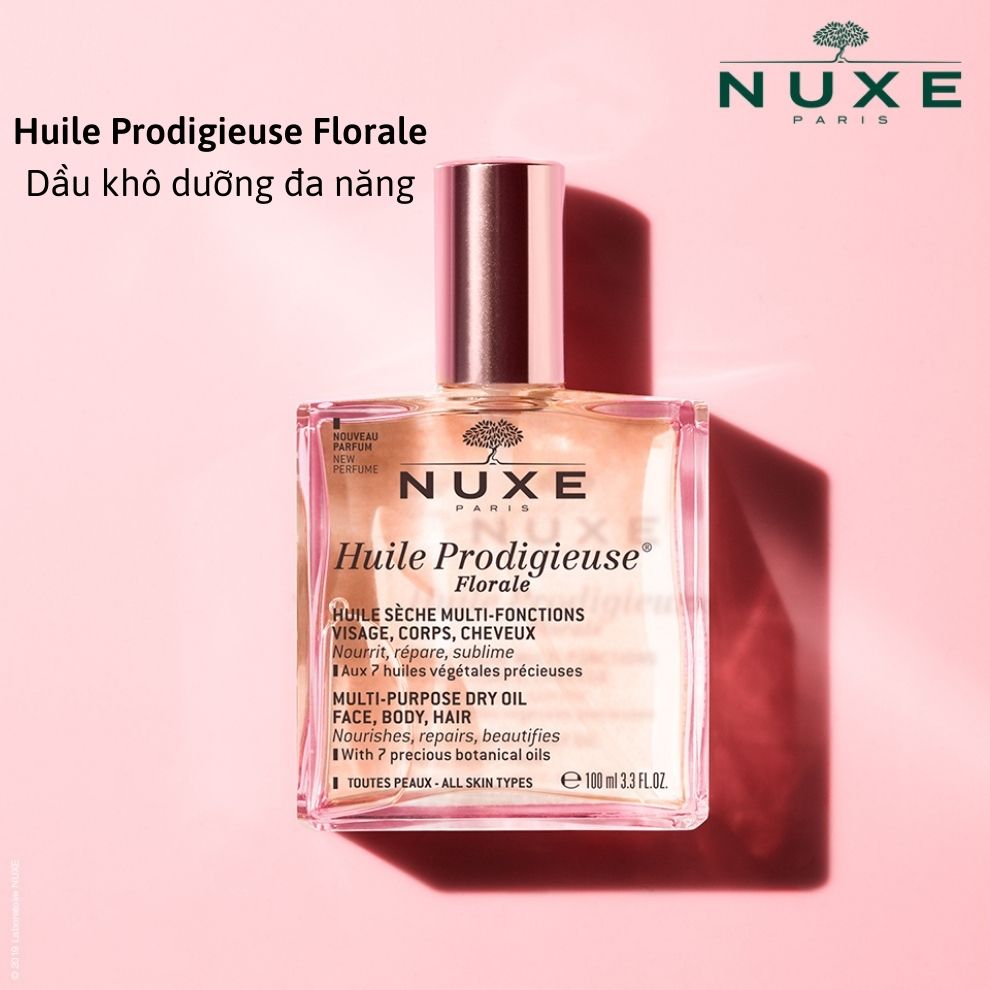 Nuxe Huile Prodigieuse Florale là một loại dầu khô đa công dụng cho mặt, cơ thể và tóc với 7 loại dầu thực vật có nguồn gốc tự nhiên quý giá 100% thảo dược : dầu dưỡng ẩm Tsubaki, dầu argan, macadamia, dầu làm mịn, dầu dưỡng ẩm hoa trà, dầu hazelnut để bảo vệ và dầu hạnh nhân ngọt để làm mềm , đẹp da: chống oxy hóa, chống ô nhiễm, giữ ẩm và sửa chữa, làm giảm vết rạn tuyệt vời, và sửa chữa và làm mềm mại tóc của bạn.