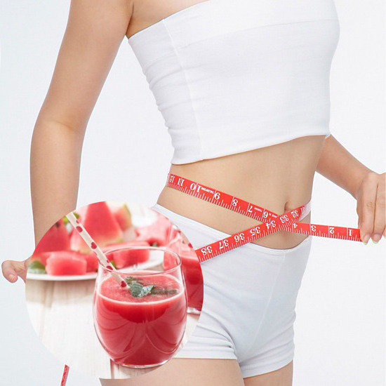 Năng lượng được tính ở phần ruột màu đỏ của dưa hấu là 30 calo/ 100 gram, thấp hơn nhiều so với các loại hoa quả khác. Ngoài ra, dưa hấu cung cấp 92% là nước. Sự kết hợp của nước và chất xơ sẽ khiến bạn cảm thấy no bụng mà không cần cung cấp nhiều calo, vì vậy ăn dưa hấu không những không gây tăng cân mà còn hỗ trợ giảm cân một cách nhanh chóng. Các axit amin có trong dưa hấu giúp tăng cường trao đổi chất khiến hạn chế mỡ tích tụ ở các vùng bụng và mông. Ngoài ra dưa hấu còn chứa magie giúp da săn chắc cho nên các bạn có thể yên tâm giảm cân mà không lo da bị chùng nhão xấu đi.