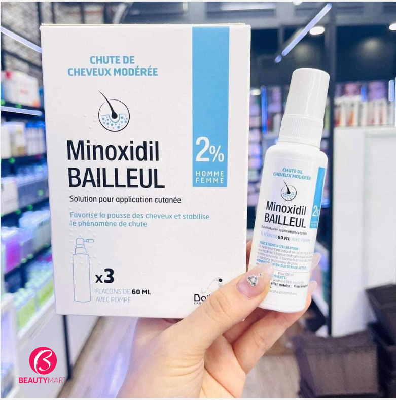 - Minoxidil Bailleul 2% của Pháp được bán trong các nhà thuốc uy tín, nhận hàng nghìn lượt phản hồi tích cực.