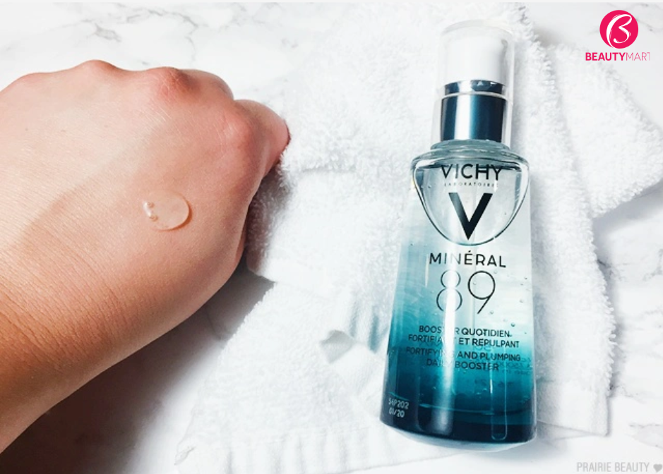 Chất serum dạng gel trong, chỉ khoảng 2 pump là đủ cho toàn mặt. Vichy Mineral 89 thẩm thấu cực nhanh có thể nhìn thấy ngay hiệu quả da căng và độ đàn hồi rất tốt chỉ sau vài lần sử dụng.