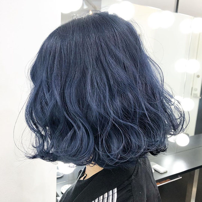 Nếu bạn yêu thích màu xanh nhưng sợ nổi bật hoặc bạn thích phong cách huyền bí thì hãy có thể thử màu xanh đen. Đặc biệt, các nàng có mái tóc dài bồng bềnh gợn sóng thì đây là một ý tưởng tuyệt vời. Màu tóc nhuộm sẽ mang đến một vẻ đẹp thời thượng và hấp dẫn nhất. Ngoài ra, màu tóc này cũng không quá kén da; vì thế, ai cũng có thể nhuộm được.