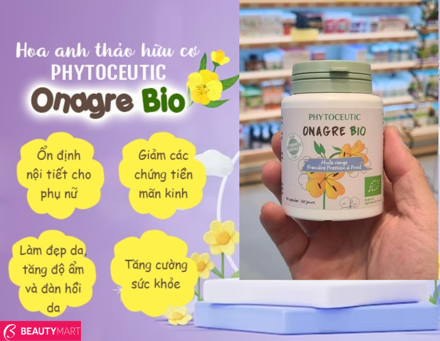 - Hoa anh thảo Phytoceutic Onagre Bio chính hãng Pháp giá khoảng 450-580k/ hộp 90 viên được phân phối bởi thương hiệu uy tín gần 20 năm kinh nghiệm trên thị trường Dược Mỹ phẩm Pháp BeautyMart . Khách hàng mua trực tiếp tại BeautyMart để có mức giá cạnh tranh nhất nhé. Dịch vụ chăm sóc khách hàng tận tình, được kiểm hàng trước khi nhận.