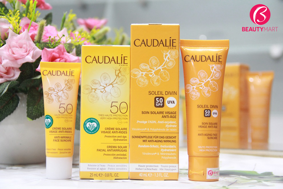 Nhắc đến Caudalie là nhắc đến những sản phẩm an toàn lành tính chiều chuộng được cả những làn da nhạy cảm, khó chiều nhất. Đặc biệt với việc khai thác triệt để công dụng chống oxy hóa tuyệt vời từ trái nho, tất cả sản phẩm của Caudalie hầu hết đều chống lão hóa rất tốt. Kem chống nắng Caudalie Soleil Divin Anti-Ageing Face Suncare SPF 50 cũng không nằm ngoài điều đó.
