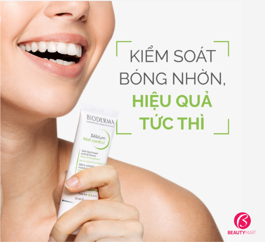 Bioderma Sebium Mat Control là một loại kem dưỡng ẩm kiểm soát bóng nhờn, bảo vệ da khỏi nguy cơ bị bóng nhờn, làm sạch lỗ chân lông, kiểm soát tiết bã nhờn qua đó hạn chế hình thành mụn và có khả năng làm dịu da nhạy cảm. Chất dưỡng mềm mượt ngay lập tức thấm vào da, và giữ ẩm lên đến 8h, tác dụng ngay lập tức và hiệu quả sau 7 ngày.