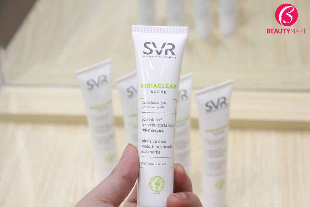 - SVR Sebiaclear Active dành cho da mụn nhạy cảm, điều trị mụn ẩn hiệu quả với tác động đẩy nhân mụn ra ngoài dễ dàng