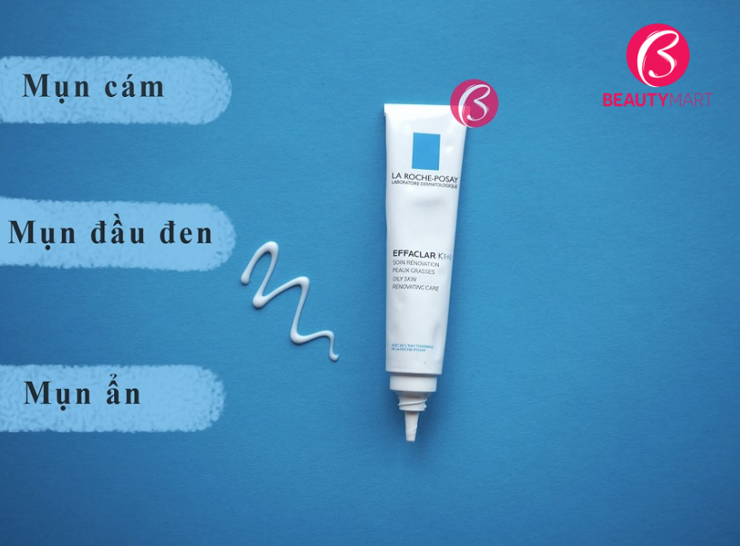 - Đối với mụn cám, mụn li ti, La roche posay Effaclar K (+) sử dụng hoạt chất như LHA, Airlicium, Sebulyse giúp giảm mụn, thông thoáng lỗ chân lông, kiểm soát bã nhờn hiệu quả.