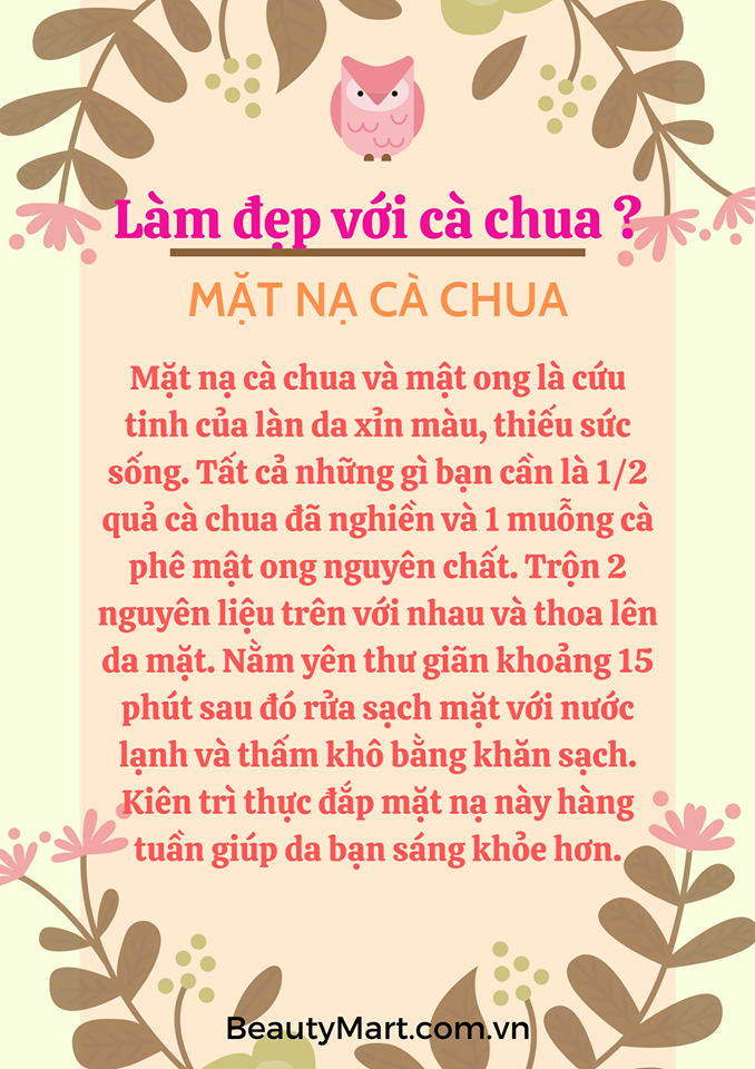 Trên đây là một số công dụng trong làm đẹp của cà chua, các nàng tham khảo thêm nghen.