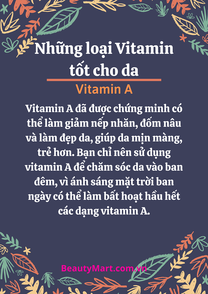 Các bạn đang muốn làn da đẹp hơn, khỏe mạnh hơn từ bên trong ? Vậy thì hãy kết thân ngay với những loại Vitamin dưới đây nha, cực kì tốt cho da ấy ạ.
