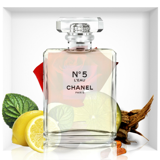 Thiết kế chai nước hoa cũng trong suốt và đơn giản như ý nghĩa của nó. Hương nước hoa Chanel N05 L'Eau vẫn giữ đúng hồn cốt của phiên bản gốc, với mùi hương của hoa hồng tháng Năm, hoa nhài, hoa ngọc lan tây, nhưng sẽ có thêm một chút hương cam quýt (gồm chanh vàng, quýt, cam ngọt và cam bergamot), và đặc biệt là có thêm mùi hương gỗ tuyết tùng mới lạ. Tất cả làm nên một bản giao hưởng L’Eau hấp dẫn và vương vấn lưu luyến lại mãi không rời.