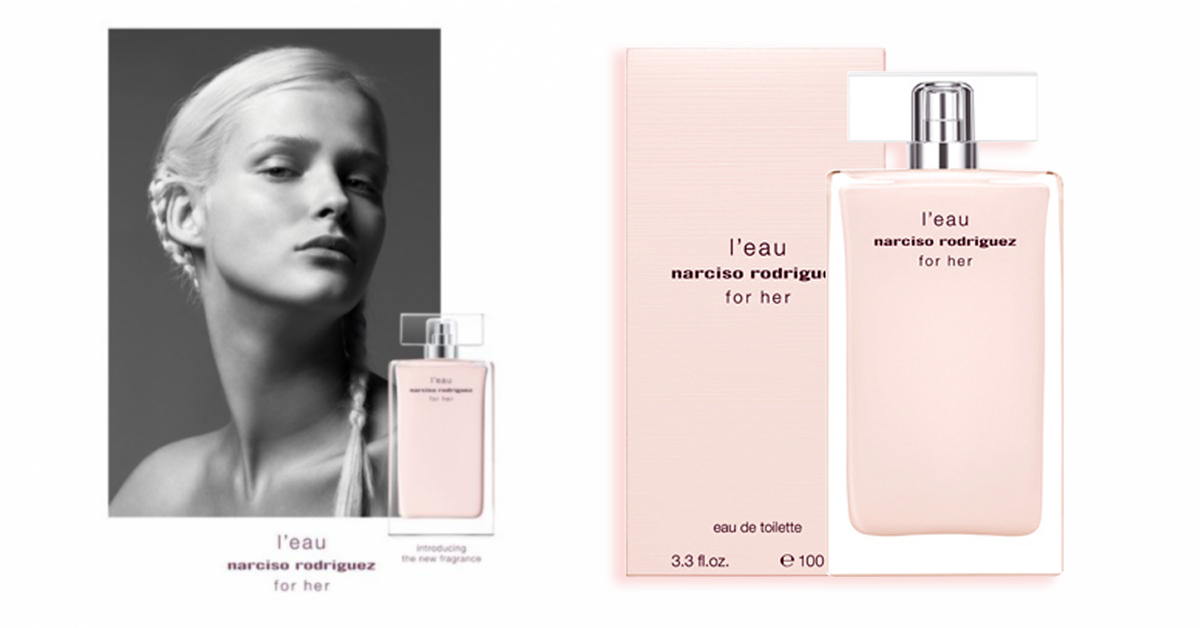 Vào năm 2013, một phiên bản nước hoa tươi tắn và nhẹ nhàng mang tên Narciso Rodriguez L'Eau For Her đã được Narciso Rodriguez cho ra mắtnhằm thỏa mãn giới mộ điệu. Không phải ở nồng độ eau fraiche hay cologne, mùi hương EDT này của hãng Narciso Rodriguez đã sử dụng cấu trúc xạ hương - SÍP để làm cho hương thơm nữ tính này thêm phần rực rỡ.