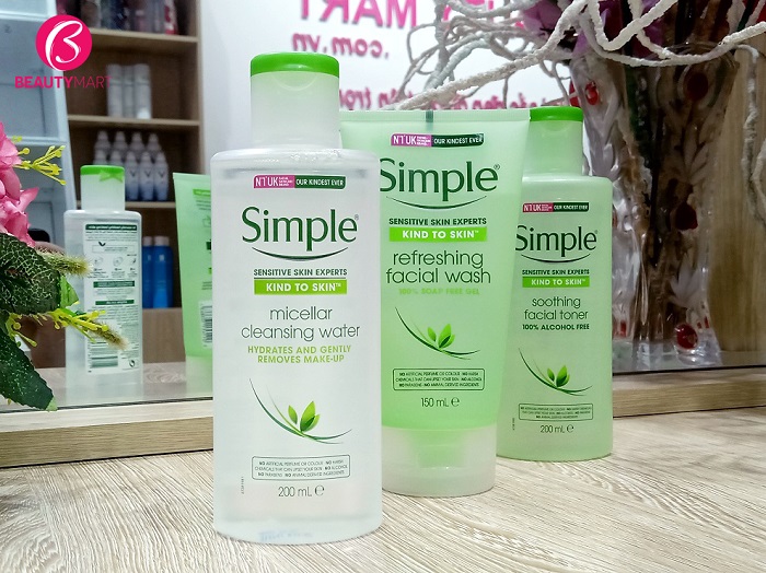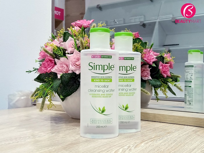 Nước tẩy trang Simple Kind To Skin Micellar Cleansing Water là một sản phẩm nước tẩy trang của hãng mỹ phẩm Simple từ Vương quốc Anh, được rất rất nhiều tín đồ làm đẹp ưa thích nhờ vào hiệu quả làm sạch da “mạnh mẽ”, ngay lập tức có thể lấy đi hết bụi bẩn, bã nhờn cùng lớp make up mà không gây kích ứng trên da, kể cả những vùng nhạy cảm như mắt và môi.
