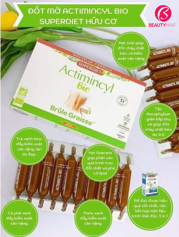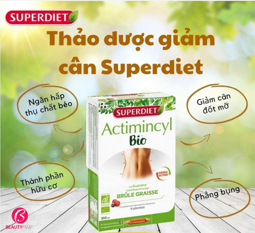 Nước Uống Giảm Cân Superdiet Actimincyl Bio Đốt Mỡ Đa Tầng Của Pháp đã có mặt ở thị trường Việt Nam. Hàng chính hãng, giá tốt được phân phối tại thương hiệu UY TÍN gần 20 năm kinh nghiệm và phân phối chính hãng chuyên Dược Mỹ phẩm Pháp BeautyMart. Dịch vụ ship COD toàn quốc, kiểm hàng trước khi nhận và bảo hành sau bán hàng nên khách hàng hoàn toàn yên tâm khi mua hàng chính hãng tại BeautyMart.