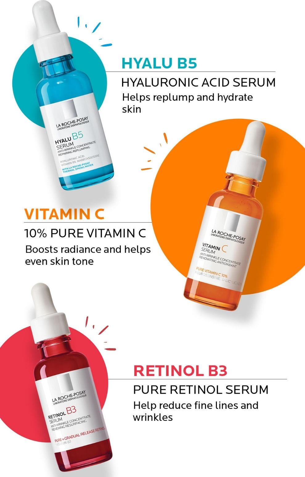 Là dòng serum chống lão hóa da mặt mạnh mẽ, La Roche Posay Retinol B3 chứa retinol tinh khiết và vitamin B3 để mang lại làn da mịn màng, ngậm nước và trẻ trung hơn rõ rệt. Được nghiên cứu và chọn lọc kỹ càng bởi các chuyên gia da liễu hàng đầu của La Roche Posay, em ấy thực sự hiệu quả cho việc giảm sự xuất hiện của các nếp nhăn và các dấu hiệu của tổn thương sớm do ánh nắng mặt trời và sự đổi màu da.