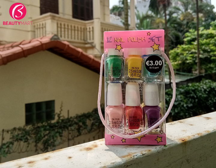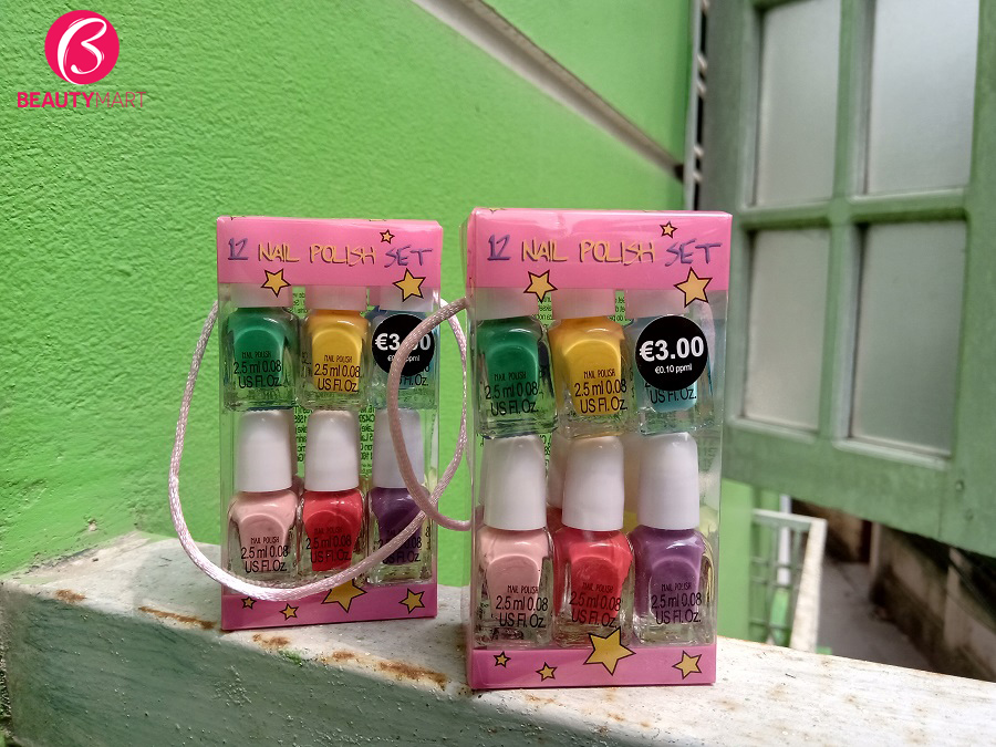 1 set 12 chai mỗi chai 2ml toàn màu pastel cực xinh tha hồ cho các bé gái làm điệu. Mua cả set tính ra rất tiết kiệm.
