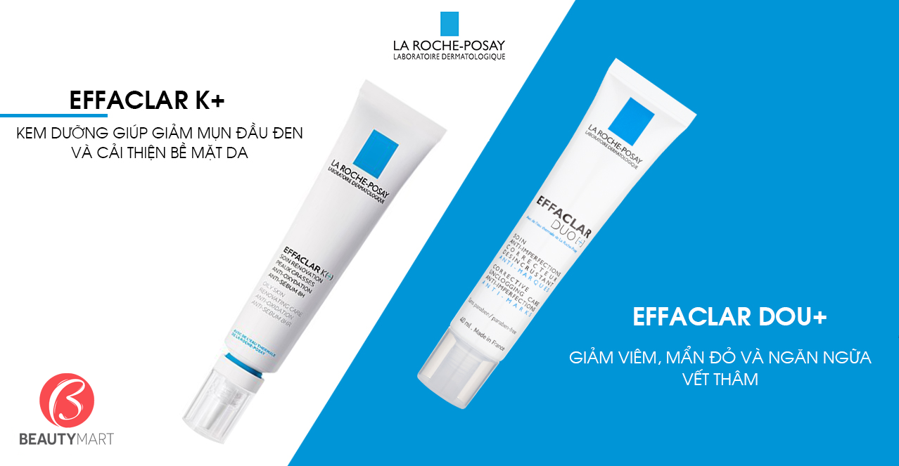 SO SÁNH KEM TRỊ MỤN EFFACLAR DUO + VÀ KEM GIẢM MỤN ĐẦU ĐEN EFFACLAR K (+)