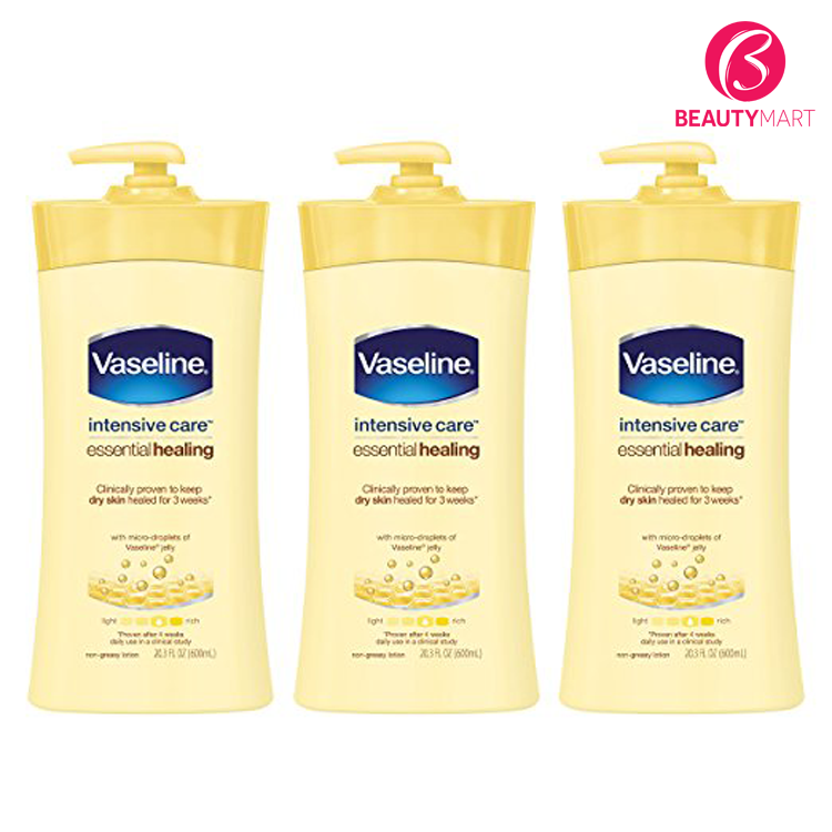 Sữa dưỡng thể Vaseline Intensive Care Essential Healing giúp làn da của bạn sẽ luôn được dưỡng ẩm hiệu quả 24 tiếng đồng hồ và trắng sáng, mịn màng lên từng ngày trông thấy rõ.
