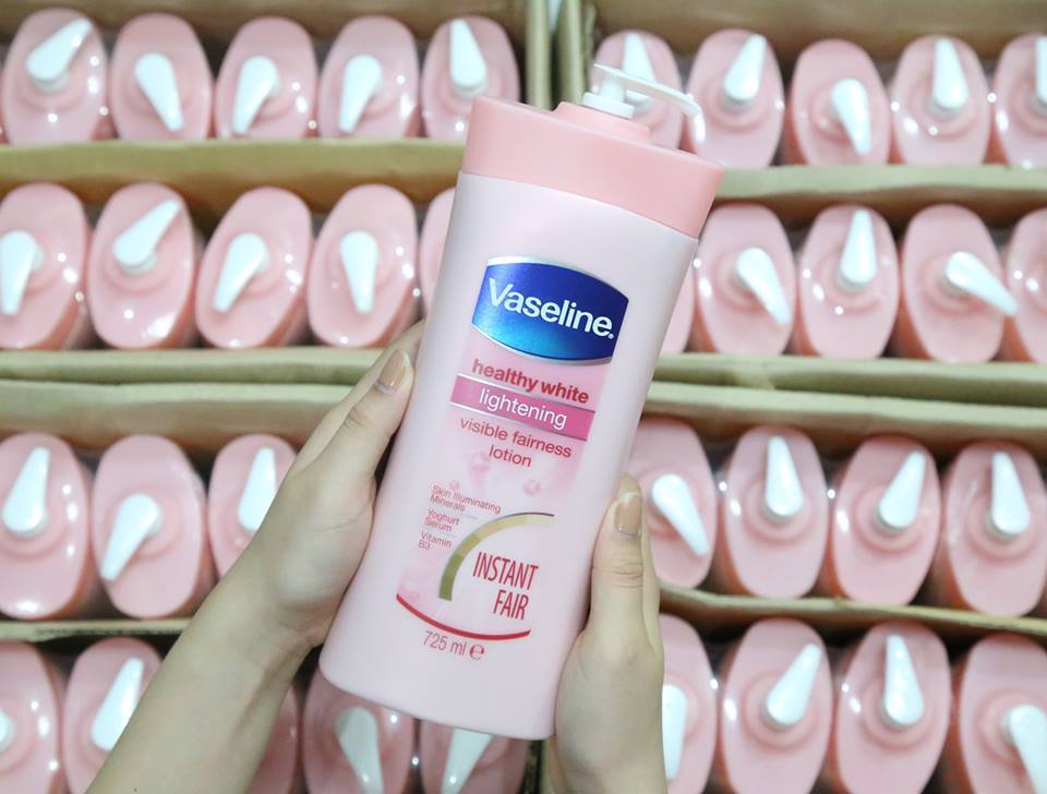 Sữa dưỡng thể trắng da Vaseline healthy white lightening Với công thức làm trắng chứa những thành phần khoáng chất làm trắng sáng da toàn diện như huyết thanh chiết xuất từ Yaourt & Vitamin B3.