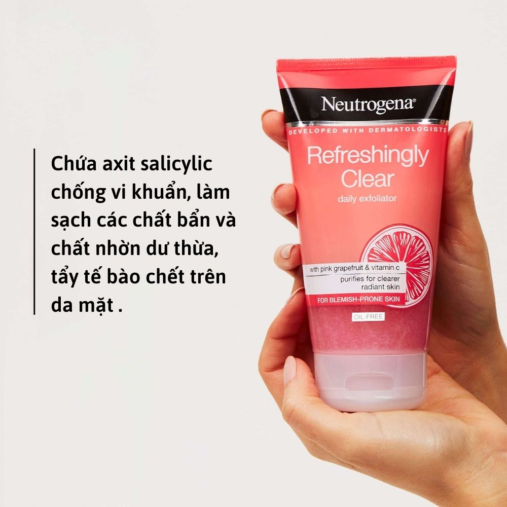 Neutrogena Refreshingly Clear Daily chiết xuất từ bưởi hồng và Vitamin C, với công nghệ làm sạch Microclear giúp làm sạch mụn đầu đen và vết thâm mà không làm khô da. Sữa Rửa Mặt Tinh Chất Bưởi Neutrogena có dạng hạt cát nhỏ nhẹ nhàng là sạch bụi bẩn, thu hẹp lỗ chân lông, giảm nhờn, mang lại cho da mặt bạn sự mịn màng, sạch mụn, sáng khỏe đầy sức sống. Sản phẩm thích hợp cả với những làn da nhạy cảm.