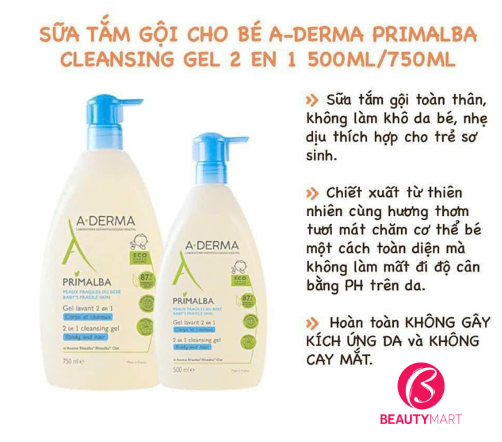 Sữa Tắm Gội A-Derma Trị Rôm Sẩy, Mẩn Ngứa và Viêm Da Cơ Địa Ở Trẻ Nhỏ tại BeautyMart