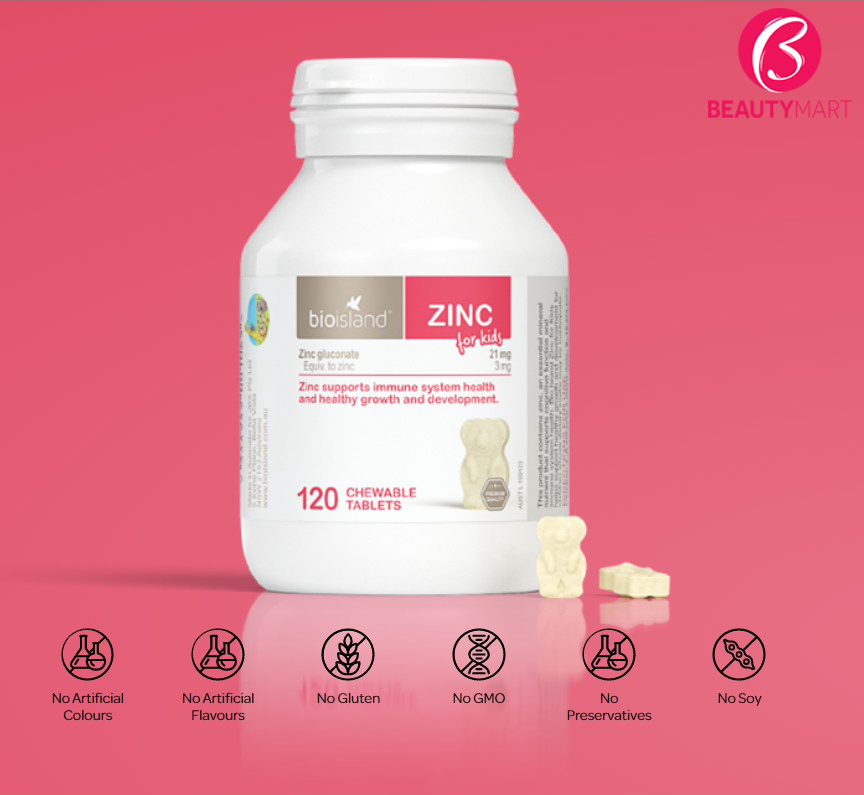 Bé lười ăn, hấp thụ kém, hệ tiêu hóa gặp vấn đề, dễ nhiễm khuẩn đường hô hấp, đường tiêu hóa...hãy bổ sung ngay viên nhai Bio Island Zinc 120 Chewable cho bé. Vai trò của kẽm cực kì quan trọng với cơ thể trẻ: kẽm tham gia vào cấu trúc của hơn 300 loại enzim kim loại, tham gia vào quá trình chuyển hóa thức ăn, hấp thụ chất dinh dưỡng, tổng hợp protein… Do đó việc bổ sung kém cho trẻ là điều thật sự cần thiết, Bio Island Zinc bổ sung lượng kẽm mà trẻ còn thiếu, hỗ trợ trong việc điều chỉnh tăng trưởng tế bào, hỗ trợ tổng hợp protein trong hệ thống miễn dịch tự nhiên của cơ thể bé và là một chất dinh dưỡng quan trọng giúp duy trì làn da khỏe mạnh, chức năng thị giác và lượng đường trong máu bình thường ở trẻ em khỏe mạnh.