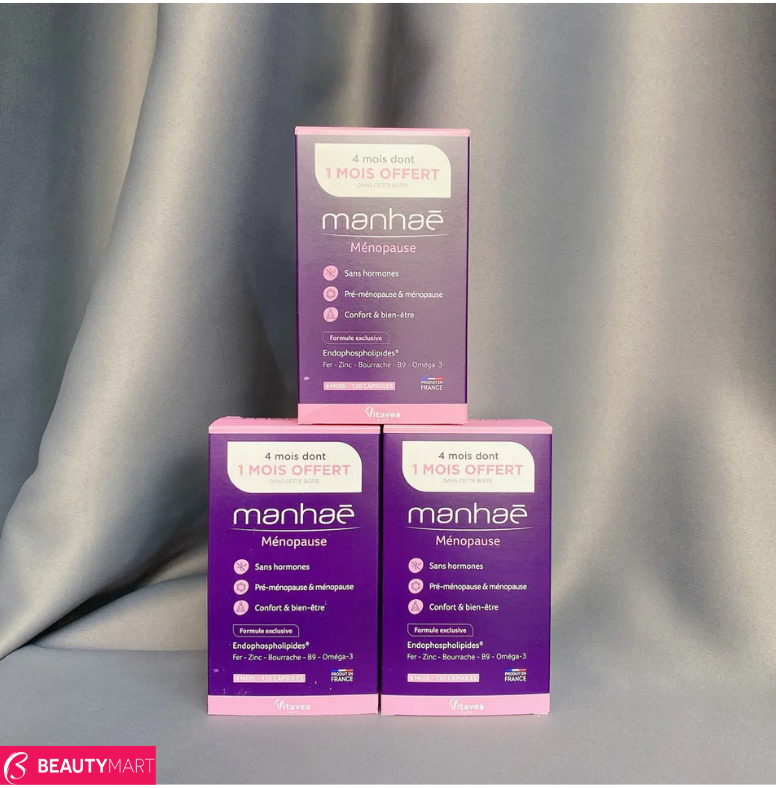 - Manhae menopause của pháp là một trong số các sản phẩm được các nhà khoa học của hãng hãng Nutrisanté Laboratories nước Pháp nghiên cứu và phát triển, sản phẩm giúp cung cấp đầy đủ các vitamine, khoáng chất cần thiết cho giai đoạn tiền mãn kinih, chất chống oxy hóa, đặc biệt bổ sung hoocmon nội tiết tố nữ estrogen thông qua các hoạt chất có nguồn gốc thực vật tự nhiên.