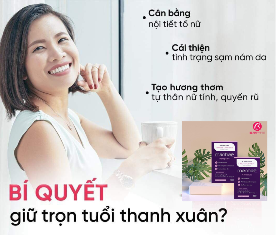 - Manhae menopause của pháp là một trong số các sản phẩm đi đầu trong việc sử dụng thực phẩm chức năng để giúp nữ giới vượt qua giai đoạn tiền mãn minh một cách nhẹ nhàng, giảm cá triệu chứng lớn như: bốc hỏa, tiểu đêm, hay cáu gắt, tính tình thay đổi, giảm ham muốn tình dục, nám, tàn nhan, khô hạn âm đạo…