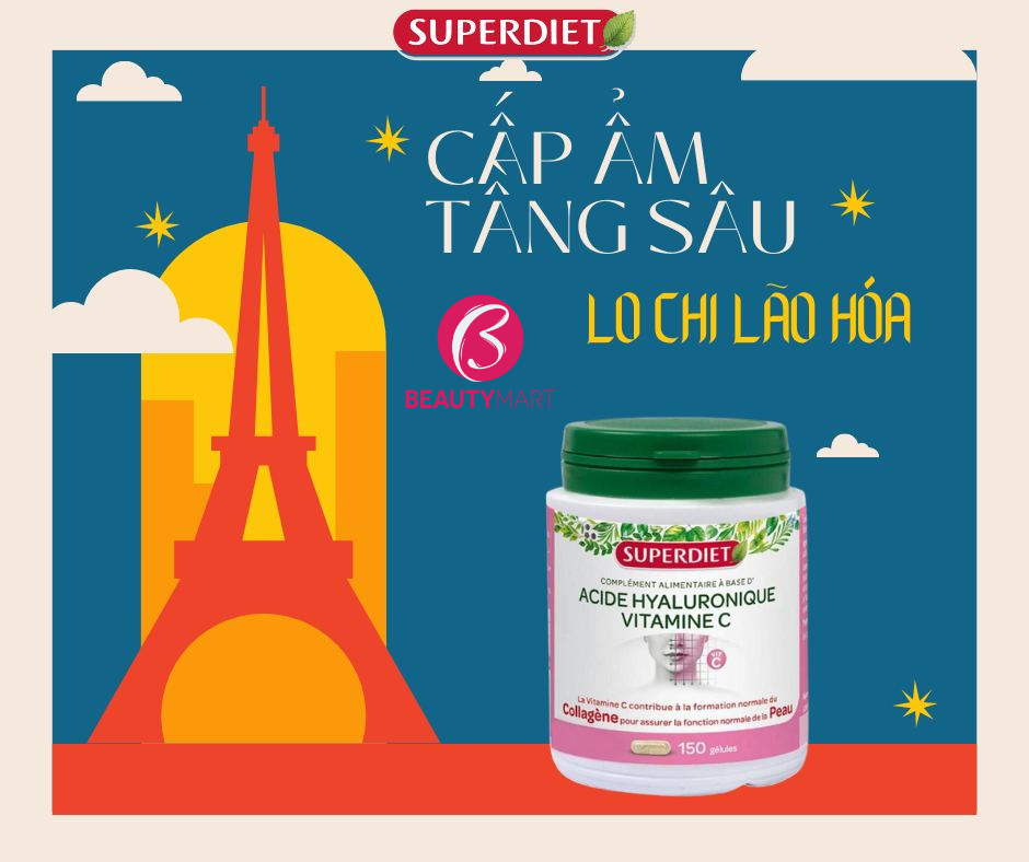 Viên Uống Đẹp Da Superdiet Hyaluronic Acid Vitamin C chính hãng đã có mặt ở thị trường Việt Nam. Hàng chính hãng, giá tốt được phân phối tại thương hiệu UY TÍN gần 20 năm kinh nghiệm và phân phối chính hãng chuyên Dược Mỹ phẩm Pháp BeautyMart. Dịch vụ ship COD toàn quốc, kiểm hàng trước khi nhận và bảo hành sau bán hàng nên khách hàng hoàn toàn yên tâm khi mua hàng chính hãng tại BeautyMart.