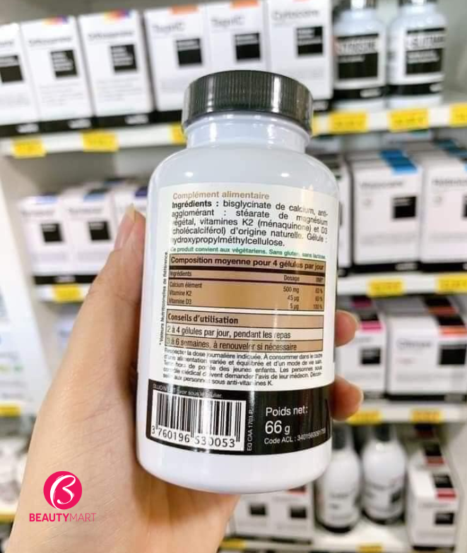 - 45mg vitamin K2 loại dẫn chất giúp hấp thụ hoàn toàn canxi mà rất hiếm loại có.