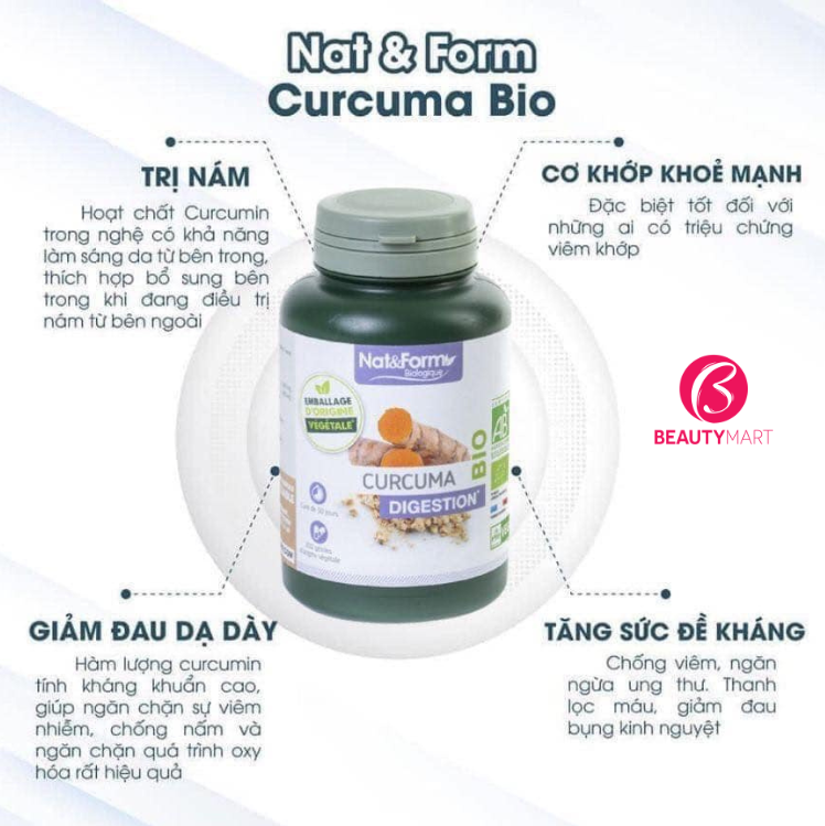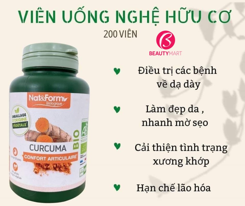 Công dụng viên tinh nghệ hữu cơ Nat & Form Curcuma Bio 200 viên