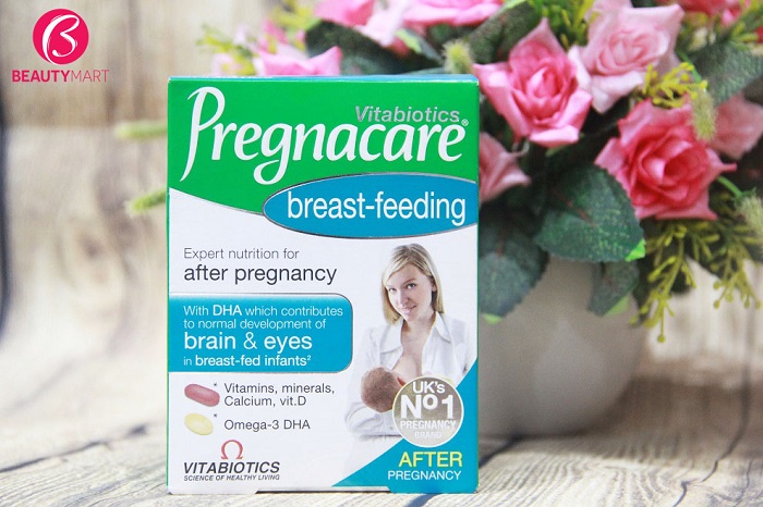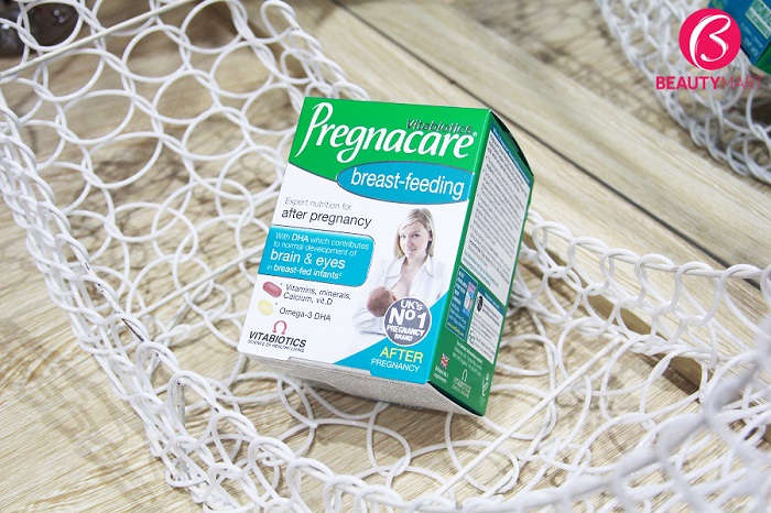 - Pregnacare Breast-feeding chứa chính xác 10mcg vitamin D, đầy đủ các dinh dưỡng bao gồm 700mg canxi và 300mg DHA, mức độ chính xác khuyến cáo của các chuyên gia quốc tế. giúp não và mắt bé phát triển, cung như giú xương chác khỏe.