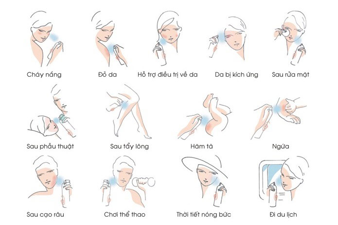 - Dùng xịt khoáng bất cứ khi nào thấy da khô, đặc biệt là với người thường xuyên phải ngồi điều hòa hoặc làn da bị bỏng nắng.