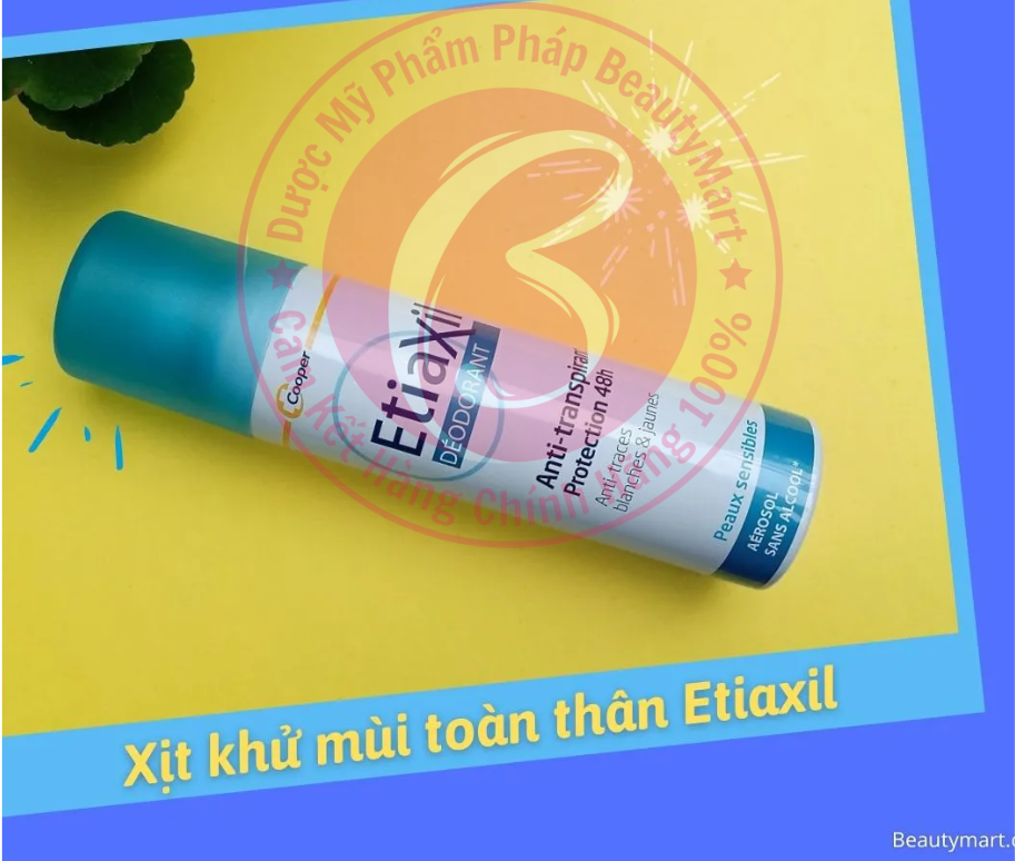 Xịt khử mùi toàn thân Etiaxil Deodorant là dòng sản phẩm sử dụng hàng ngày dành cho những trường hợp không tiết quá nhiều mồ hôi. Etiaxil Deodorant Anti-transpirant 48h có khả năng ngăn tiết mồ hôi và ngăn mùi lên đến 48h. Da cực kì nhạy cảm với cồn, tuy lăn khử mùi Etiaxil tốt thì tốt thật nhưng đôi khi dùng hay bị ngứa, vậy thì đổi sang em Xịt khử mùi Etiaxil này nhé các bạn. Dòng xịt khử mùi có thể dùng cho cả vùng nách lẫn Body, không chứa cồn, an toàn cho da nhạy cảm.