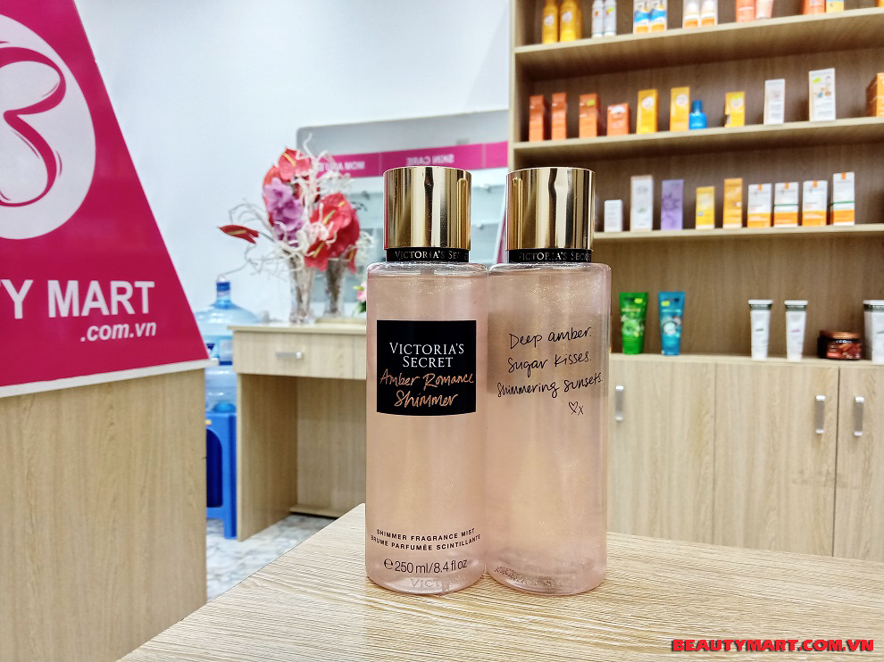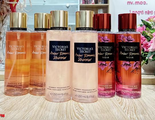 - Victoria’s Secret Amber Romance Shimmer - mùi hương sang trọng, quý phái từ tinh chất hoa anh đào, hoa cúc và lô hội