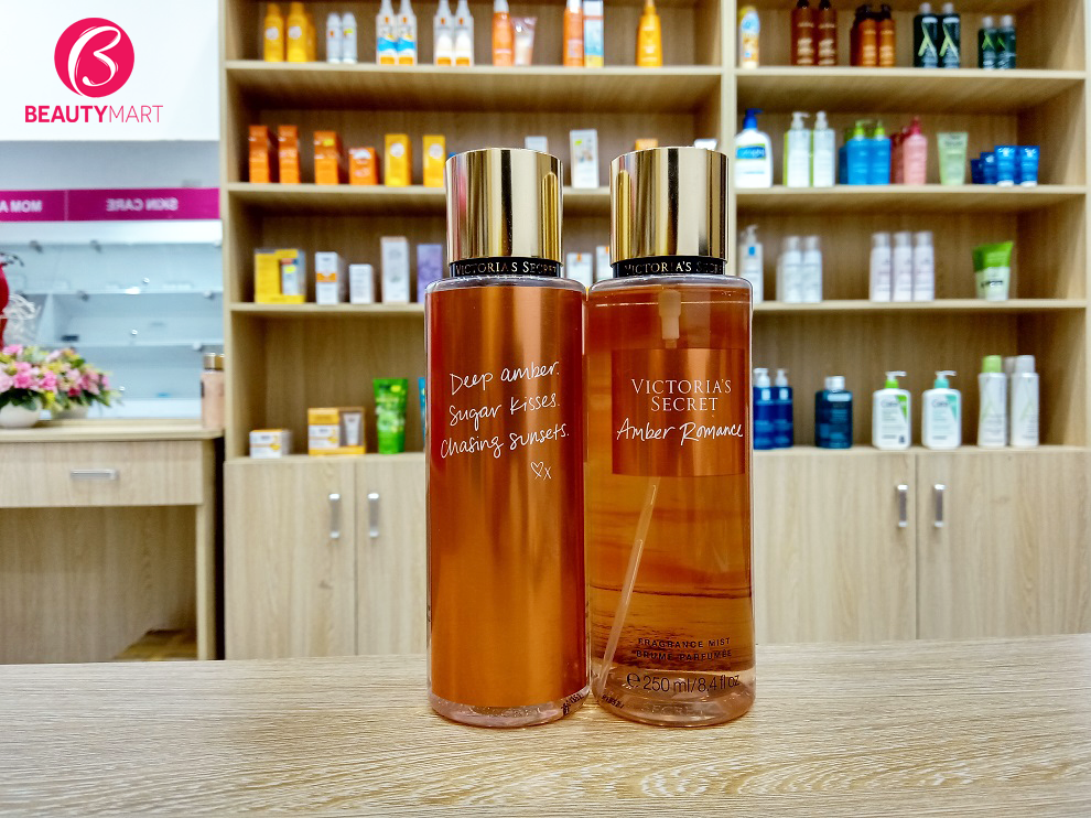 - Victoria’s Secret Amber Romance Chasing Sunset - mùi hương quý phái của Nha Đam và Cúc La Mã sẽ giúp bạn luôn thơm mát suốt cả ngày.